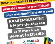 Rassemblement dans les Landes à 12h devant la DSDEN à Mont de Marsan. pour des moyens pour l’écolepour nos conditions [...]
