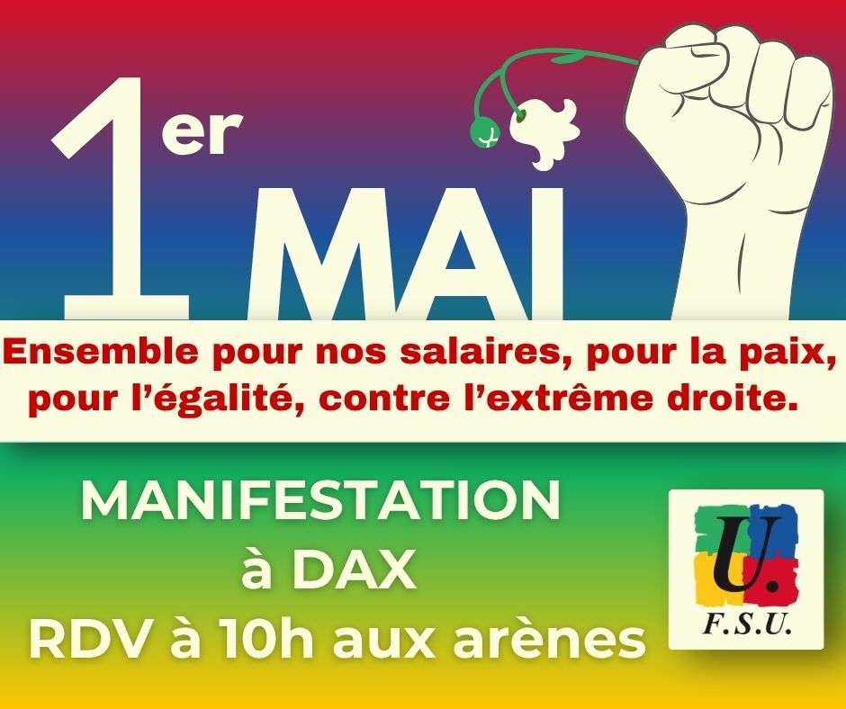 1er MAI : Ensemble pour nos salaires, pour la paix, pour l’égalité, contre l’extrême droite.